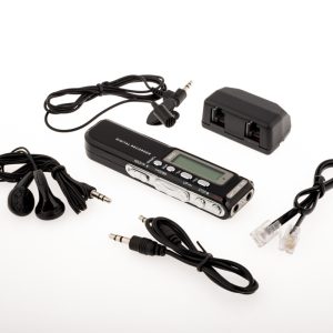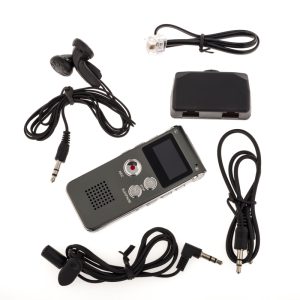 Grabadora de voz digital espía con un mini micrófono para grabar de modo imperceptible, accesorio para grabación de teléfono fijo y función de MP3.
