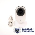 Mini cámara IP wifi HD de interior, de estética muy cuidada y pequeño tamaño que combina el color blanco con el negro.